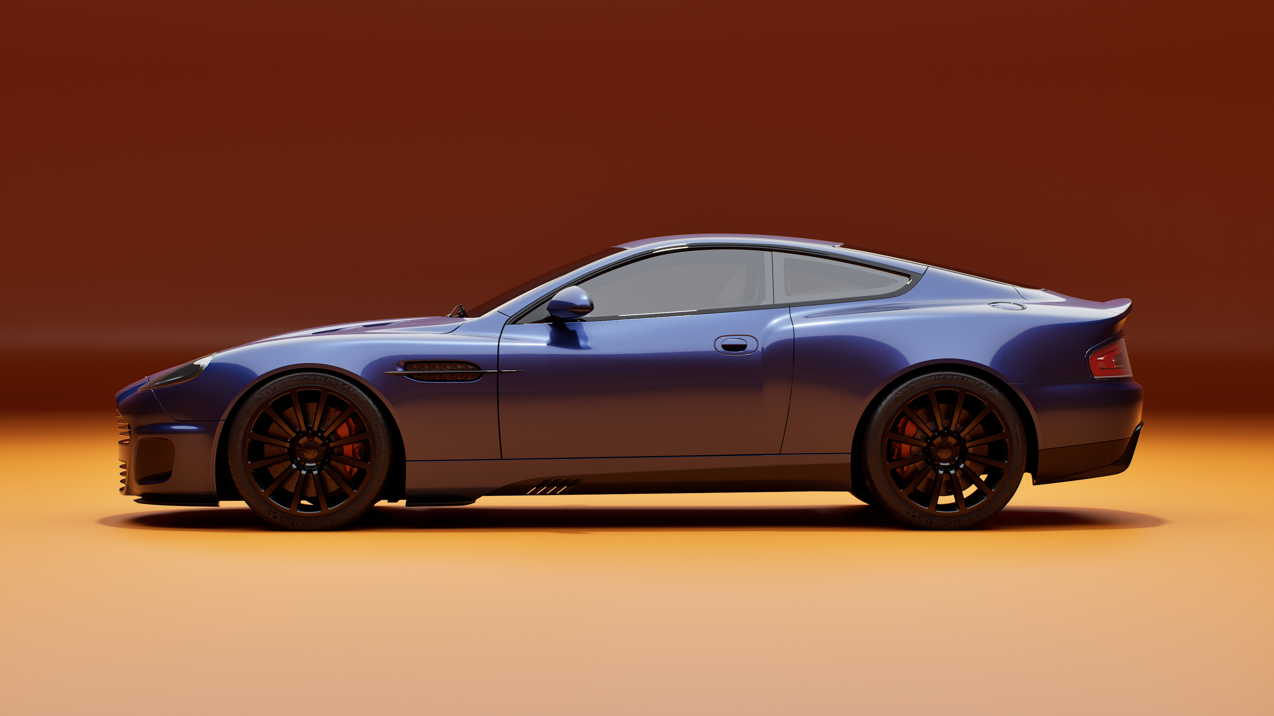 • Re-designed Vanquish body with carbon fibre bumpers, sills & side-strakes.